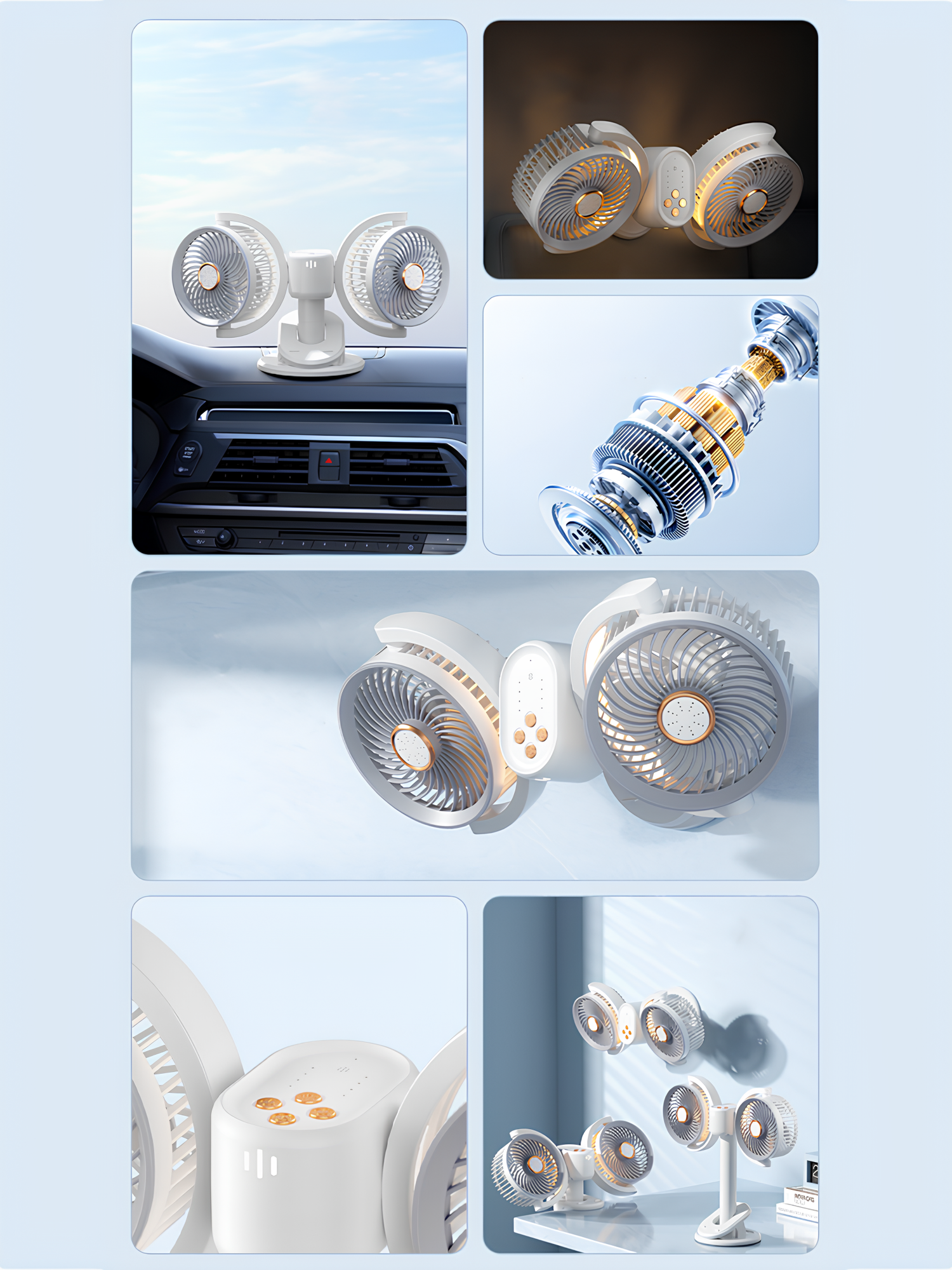 | Дополнительная информация | Вентилятор для дома, вентилятор для авто, два вентилятора в одном, премиум качество, стильный дизайн, настольное и настенное крепление, ночник с приятным цветом, таймер отключения |