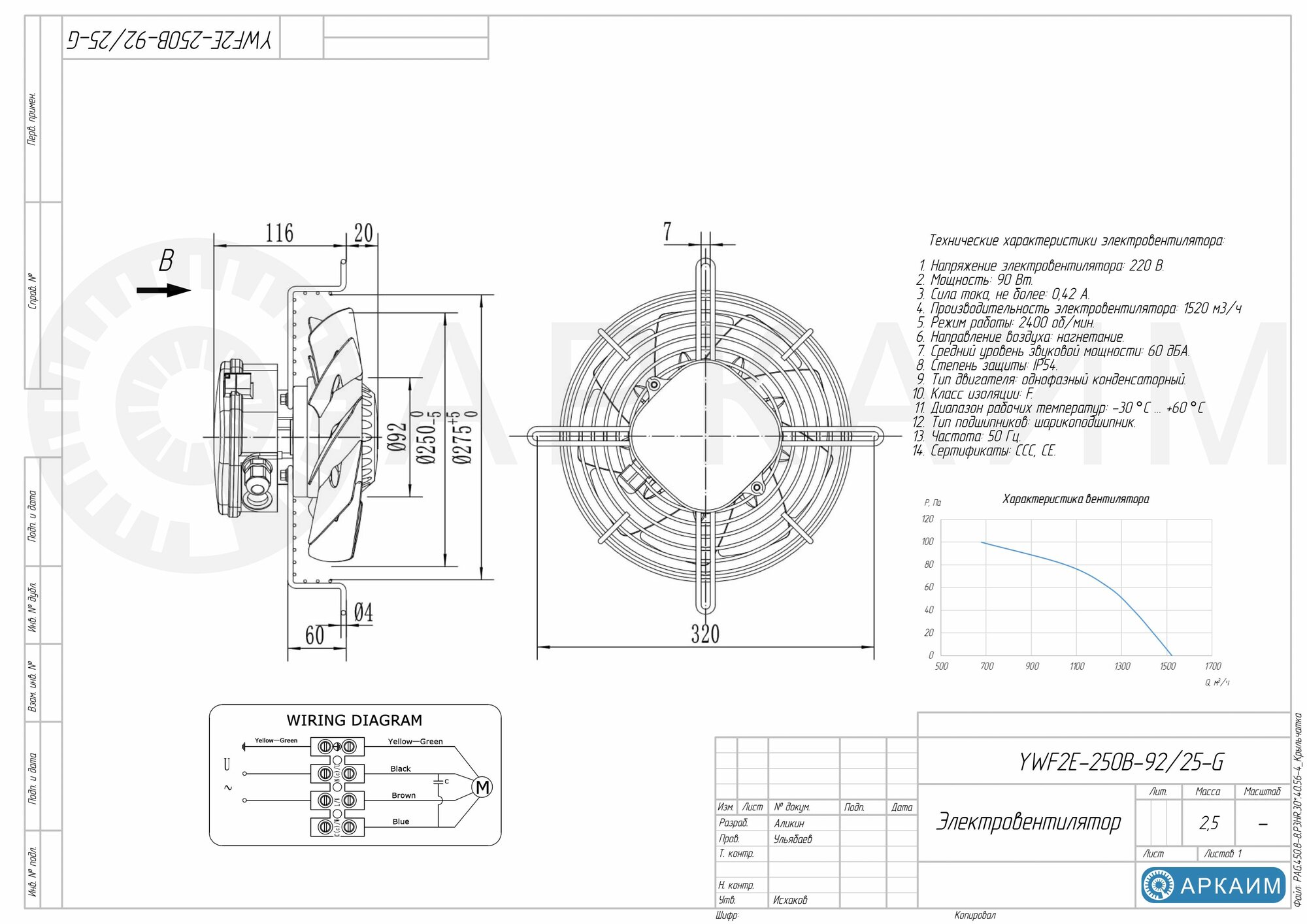 Вентилятор осевой 250 мм YWF2E-250B-92/25-G, 220 Вольт. Поток: нагнетание.: сравнение цен, характеристики, фото, актуальное наличие и цены.