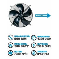 - Диаметр крыльчатки: 500 мм;