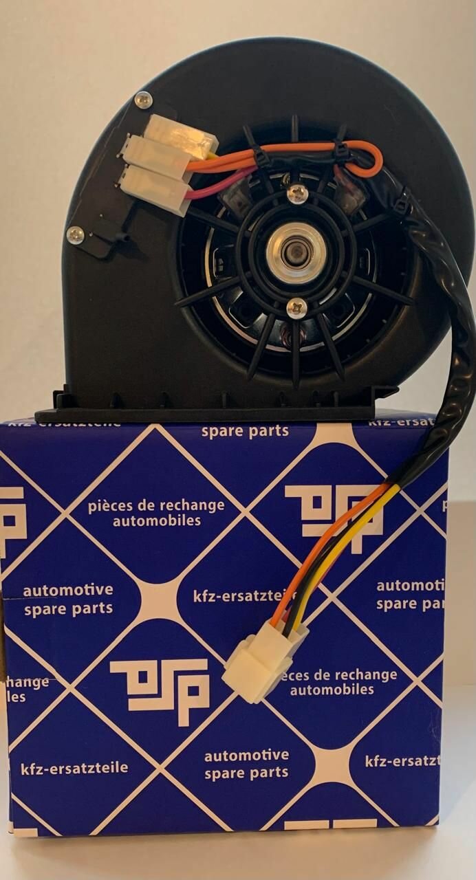Вентилятор отопителя радиальный (центробежный) 010-B70-74D 24V. Для транспортных средств, в основном для автобусов, имеет резистор, обеспечивающий 3 скорости вращения, соединительный жгут L200 мм. с 4-х контактной колодкой 45.7373 9008 , на воздухозаборе имеется защитная решётка.