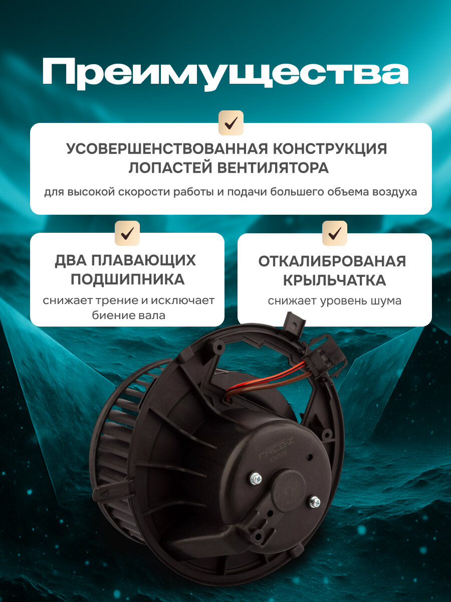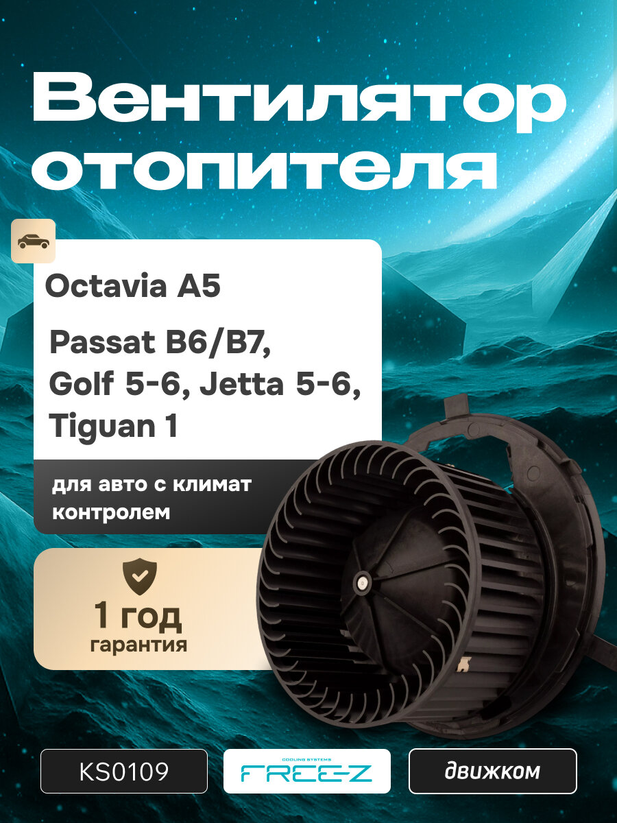 | Дополнительная информация | Моторчик вентилятор печки отопителя без резистора для Шкода Октавия А5, Суперб 2, Йети, Фольксваген Пассат Б6, Пассат Б7, Гольф 5, Гольф Плюс, Гольф 6, Джетта 5, Джетта 6, Тигуан 1, Ауди А3 8Р |