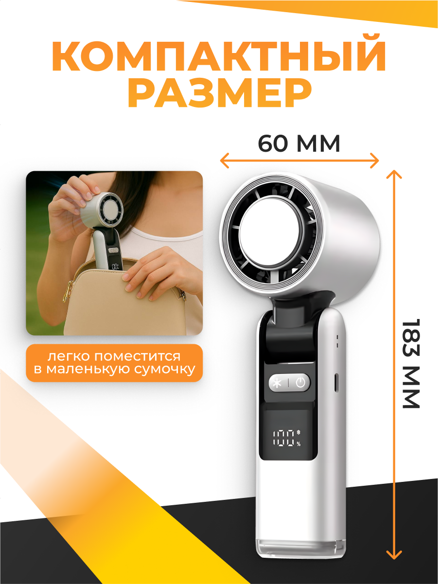 | Дополнительная информация | Вентилятор ручной; вентилятор с аккумулятором 3000 мАч; быстрая зарядка USB-C; 3 режима; компактный вентилятор 9W; вентилятор для путешествий; вентилятор для прогулок; легкий переносной вентилятор; вентилятор с тихой работой; вентилятор для жаркой погоды |
