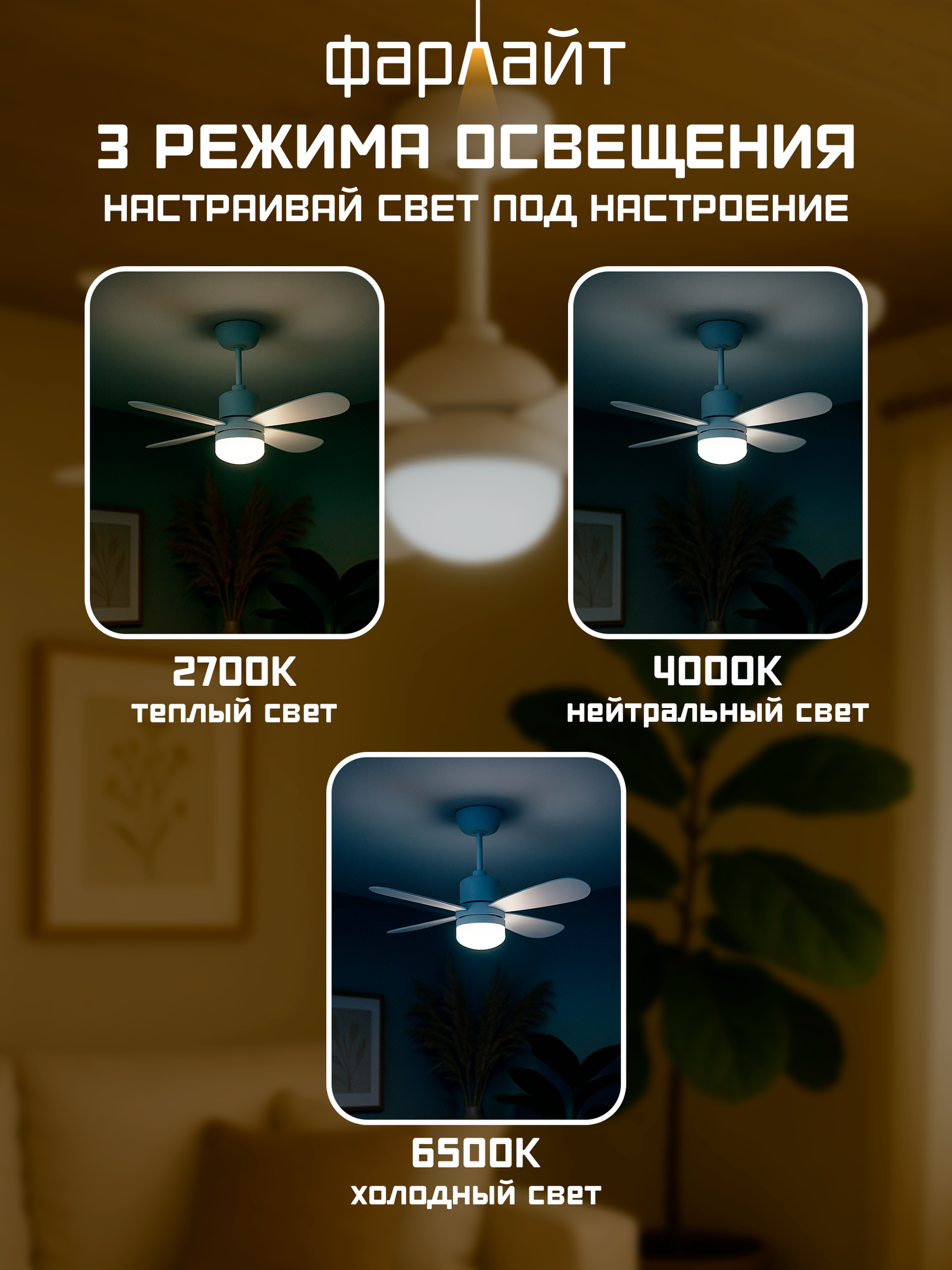 Вентилятор с подсветкой 40 Вт 3 ССТ 2700/4000/6500 K ф420 Е27 белый с ПУ в комплекте Фарлайт: сравнение цен, характеристики, фото, актуальное наличие и цены.