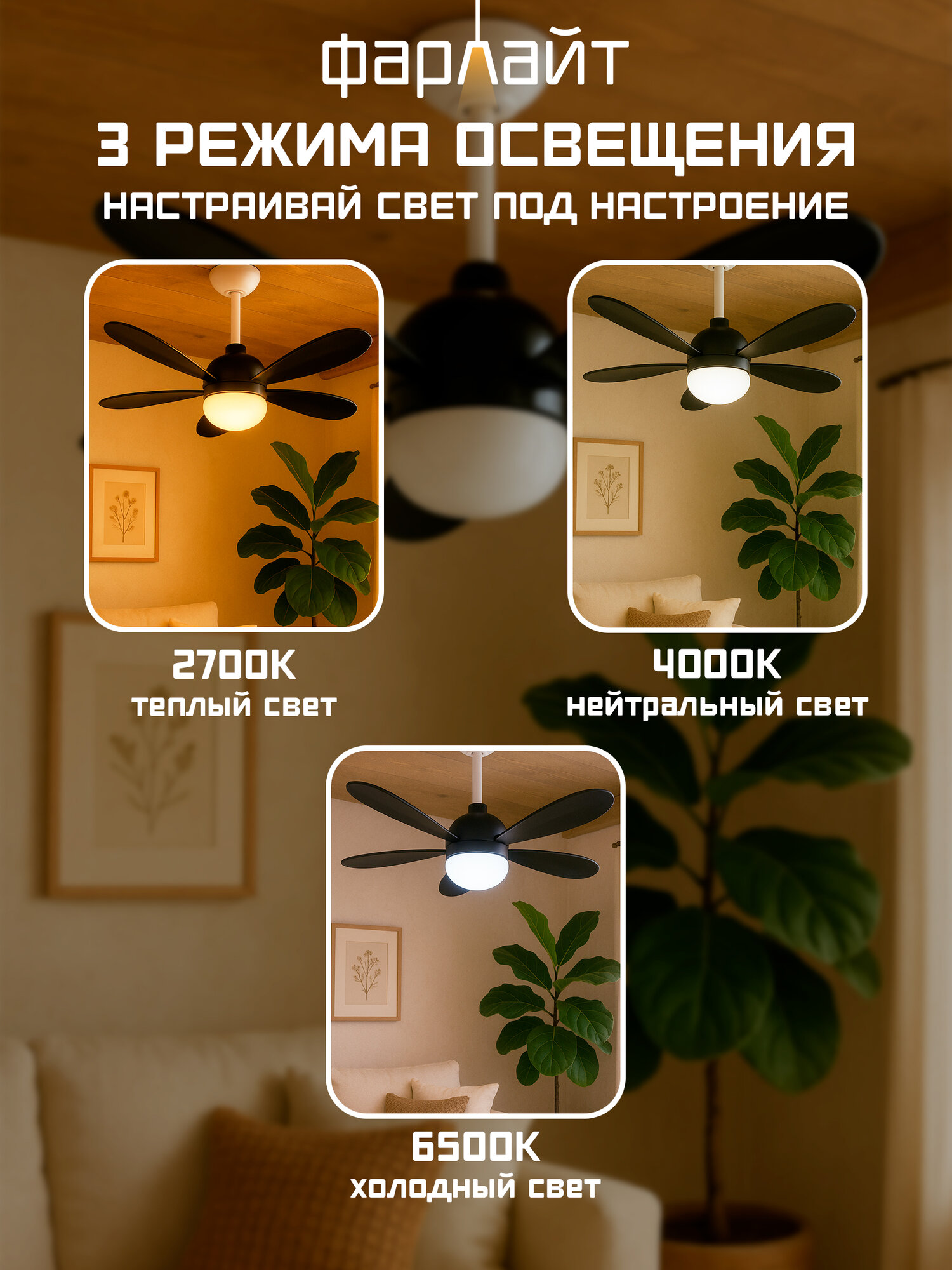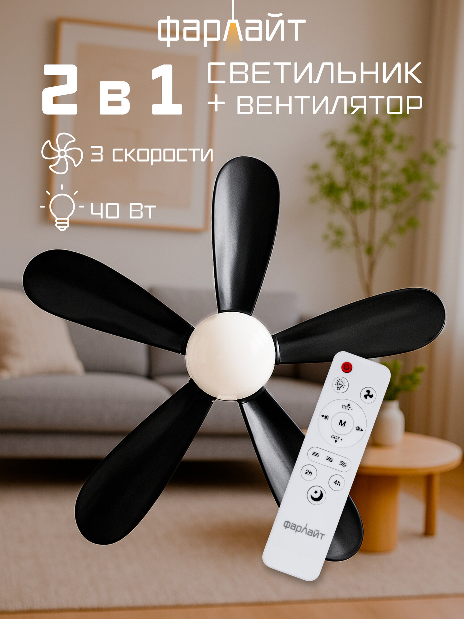 Вентилятор с подсветкой 40 Вт 3 ССТ 2700/4000/6500 K ф520 Е27 черный с ПУ в комплекте Фарлайт: сравнение цен, характеристики, фото, актуальное наличие и цены.