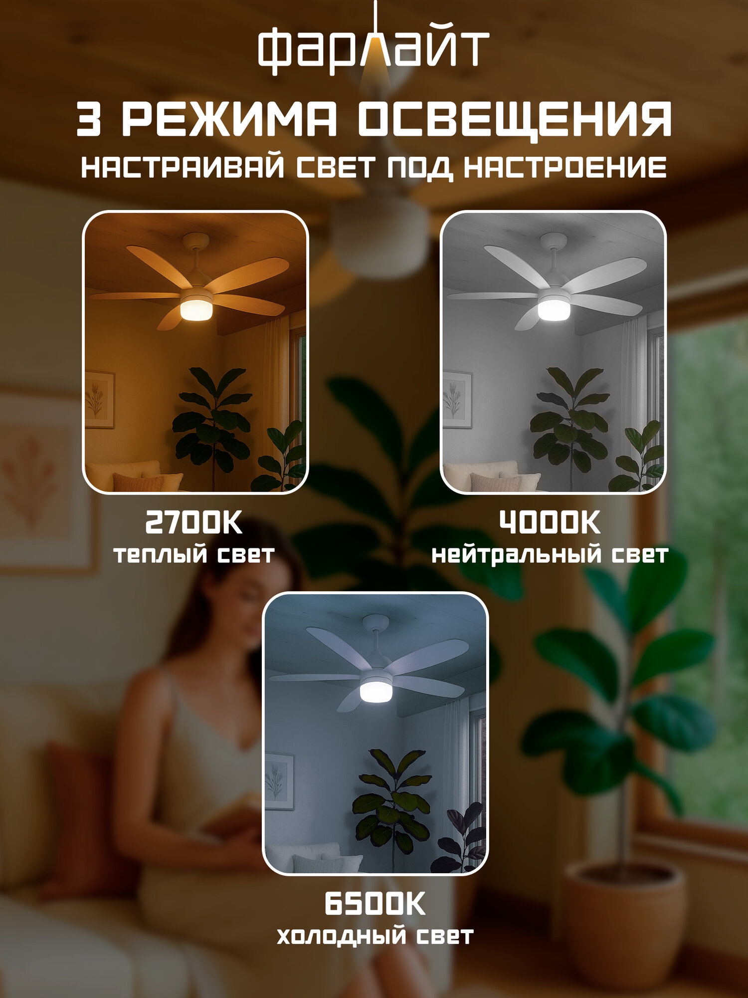 Вентилятор с подсветкой 40 Вт 3 ССТ 2700/4000/6500 K ф520 Е27 дерево с ПУ в комплекте Фарлайт: сравнение цен, характеристики, фото, актуальное наличие и цены.