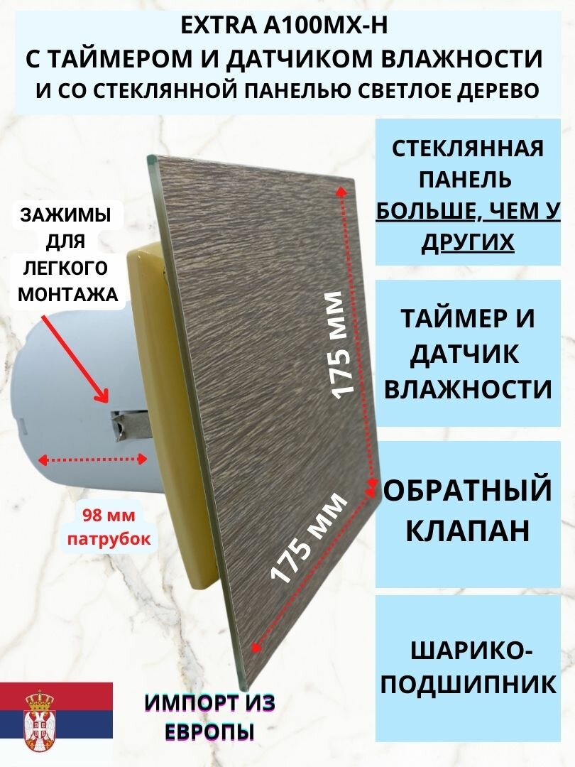 Вентилятор с таймером и датчиком влажности, со стеклянной панелью цвета светлого дерева, с обратным клапаном, D100мм, A100МX-H, Сербия: сравнение цен, характеристики, фото, актуальное наличие и цены.