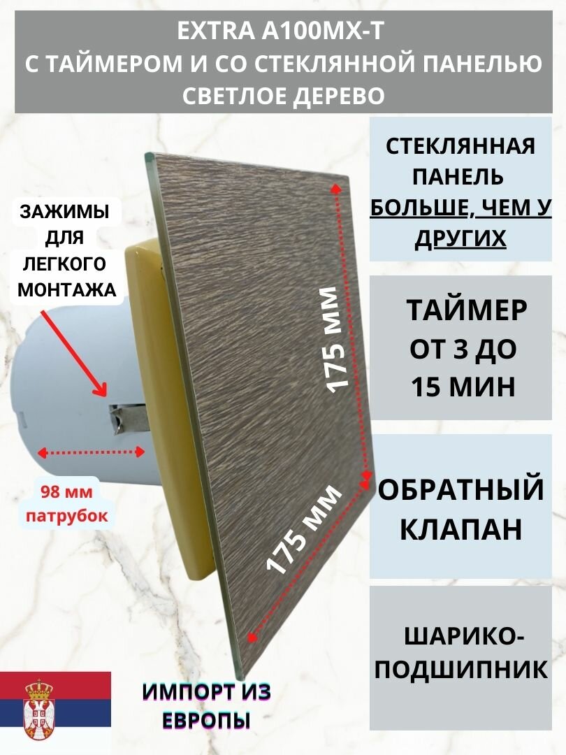 Вентилятор с таймером, со стеклянной панелью цвета светлое дерево, с обратным клапаном, D100мм, установка без сверления A100МX-T, Сербия: сравнение цен, характеристики, фото, актуальное наличие и цены.