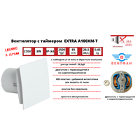 Вентилятор с таймером, тихий 26dB, 8 Вт, с обратным клапаном и креплением без сверления, D 100мм, EXTRA A100XM-T, антрацит, Сербия: сравнение цен, характеристики, фото, актуальное наличие и цены.