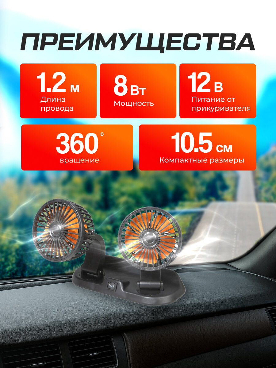 Вентилятор в салон двойной поворотный 360, 2×10.5см, 12В, общая регулировка, скотч (AIRLINE): сравнение цен, характеристики, фото, актуальное наличие и цены.