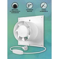 Купить Вентилятор вытяжной AURAMAX A 4-01, D 100 мм, с кабелем, выключателем и вилкой, тонкая лицевая панель, белый с доставкой по всей России.