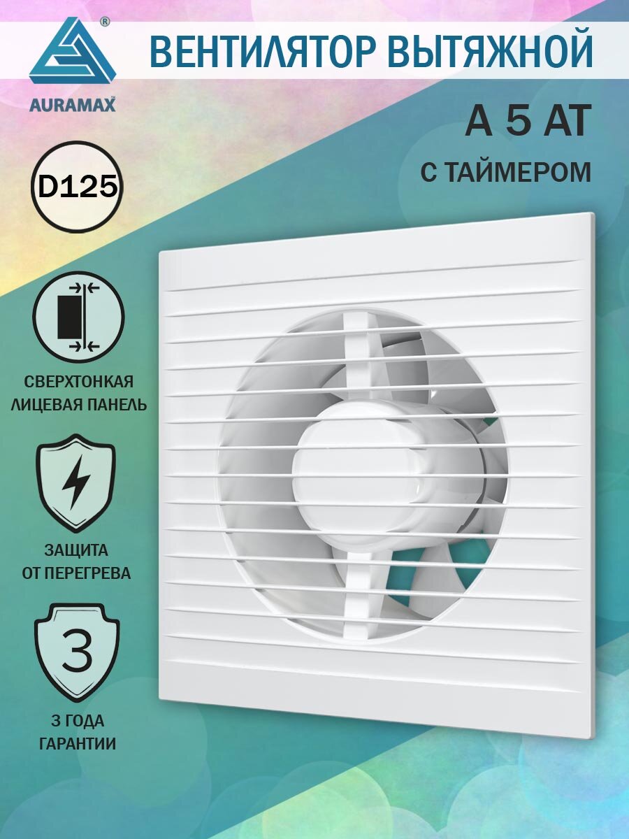 Вентилятор вытяжной AURAMAX A 5 AT, D 125 мм, с таймером задержки выключения, тонкая лицевая панель, белый: сравнение цен, характеристики, фото, актуальное наличие и цены.
