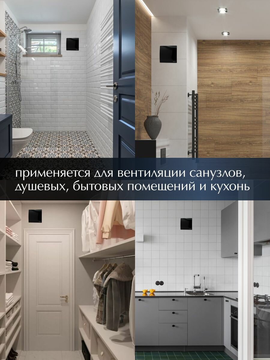 Купить Вентилятор вытяжной Awenta RM WECBP 100 ESCUDO двигатель на шарикоподшипнике воздухообмен 95м3/ч 13 Вт цвет Черный глянцевый в туалет ванную кухню с доставкой по всей России.