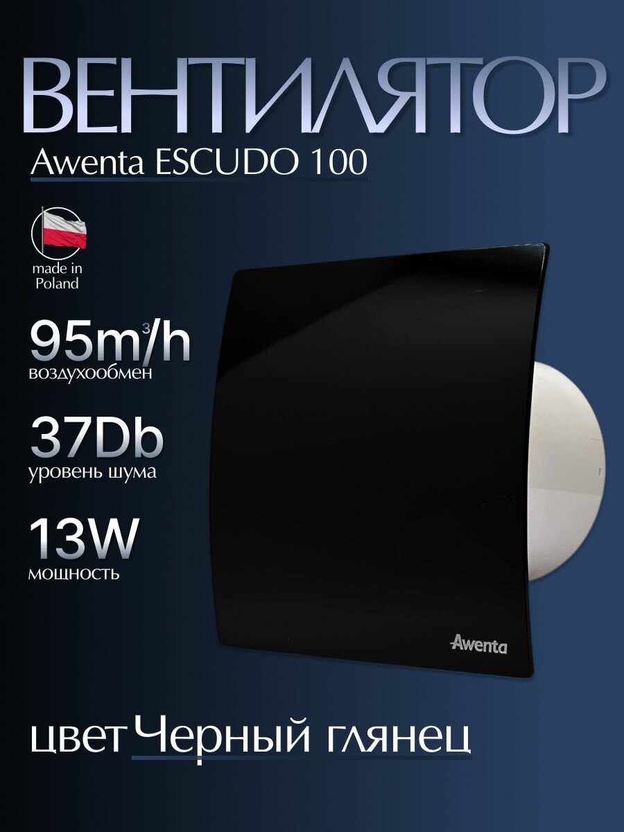 Вентилятор вытяжной Awenta RM WECBP 100 ESCUDO двигатель на шарикоподшипнике воздухообмен 95м3/ч 13 Вт цвет Черный глянцевый в туалет ванную кухню: сравнение цен, характеристики, фото, актуальное наличие и цены.