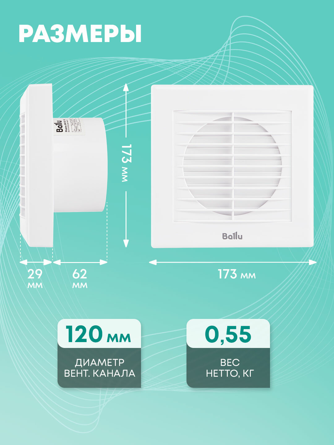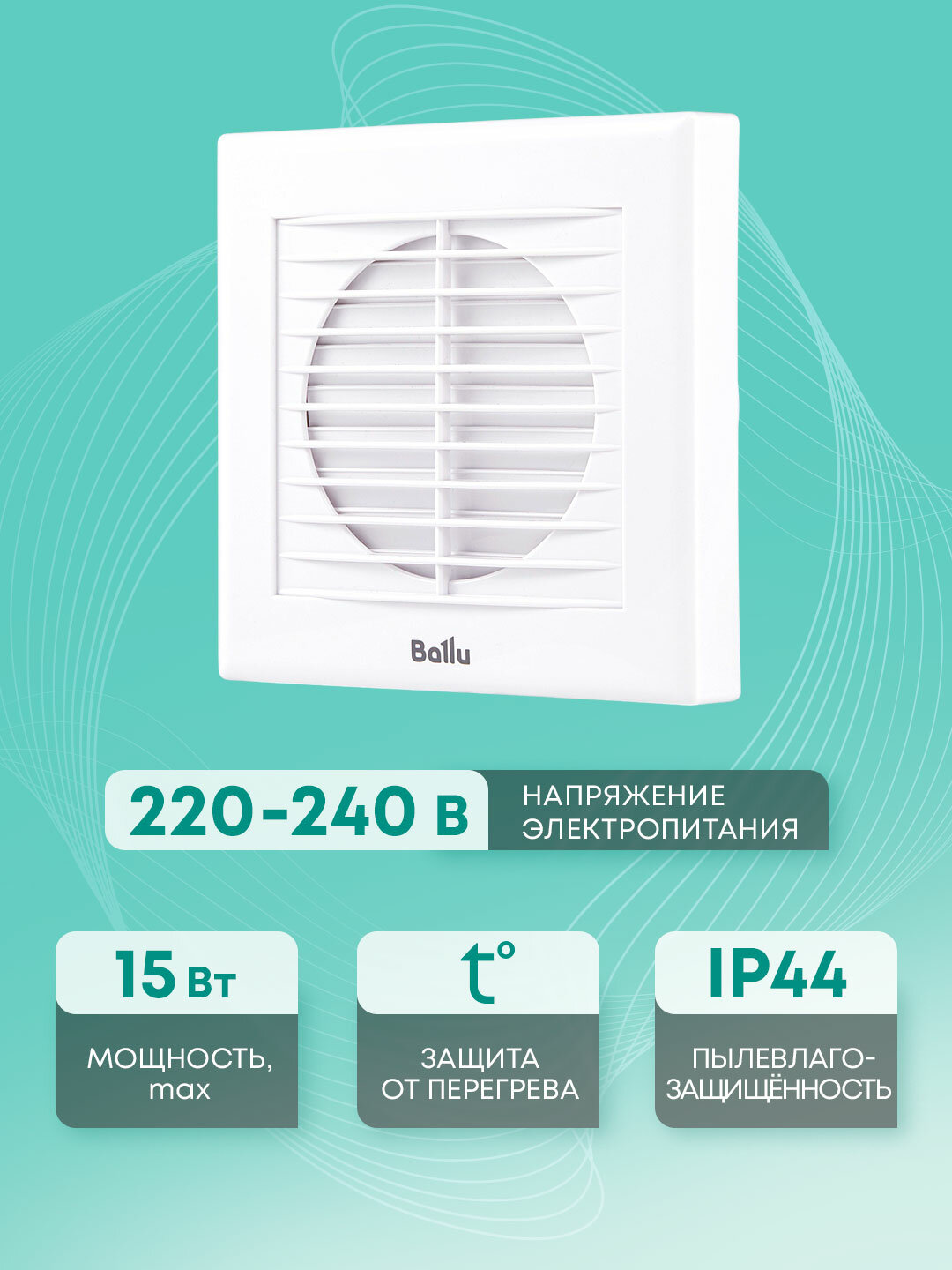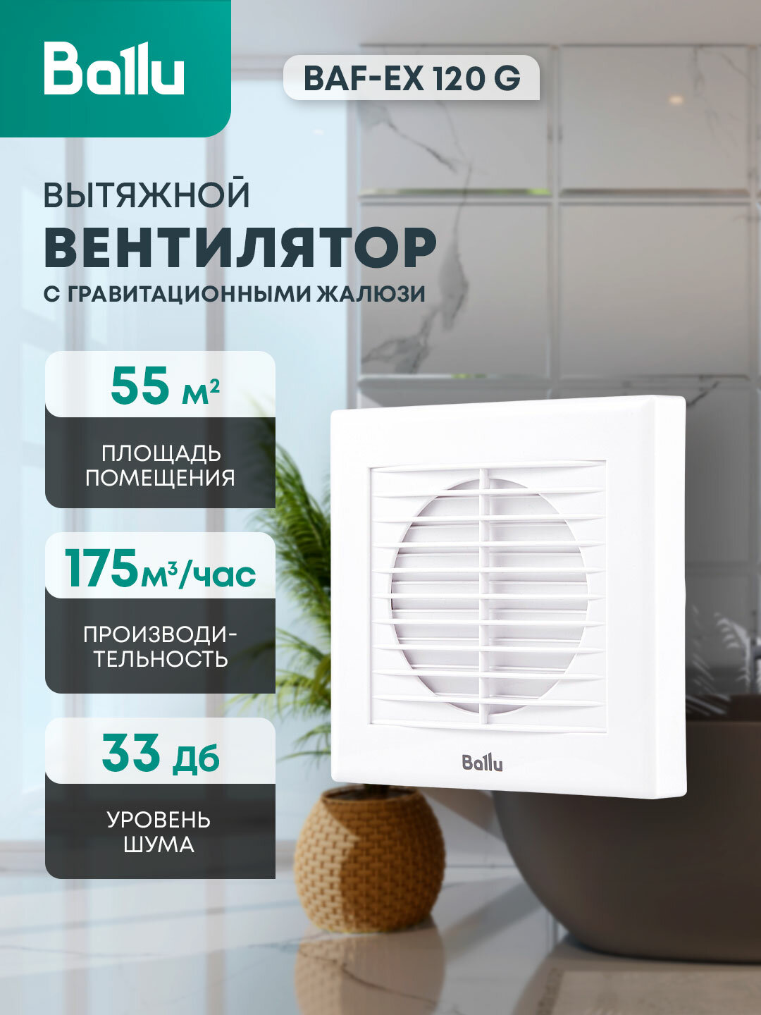 Вентилятор вытяжной Ballu BAF-EX 120 G, 120 мм, с защитой от влаги, белый, для ванной и туалета: сравнение цен, характеристики, фото, актуальное наличие и цены.