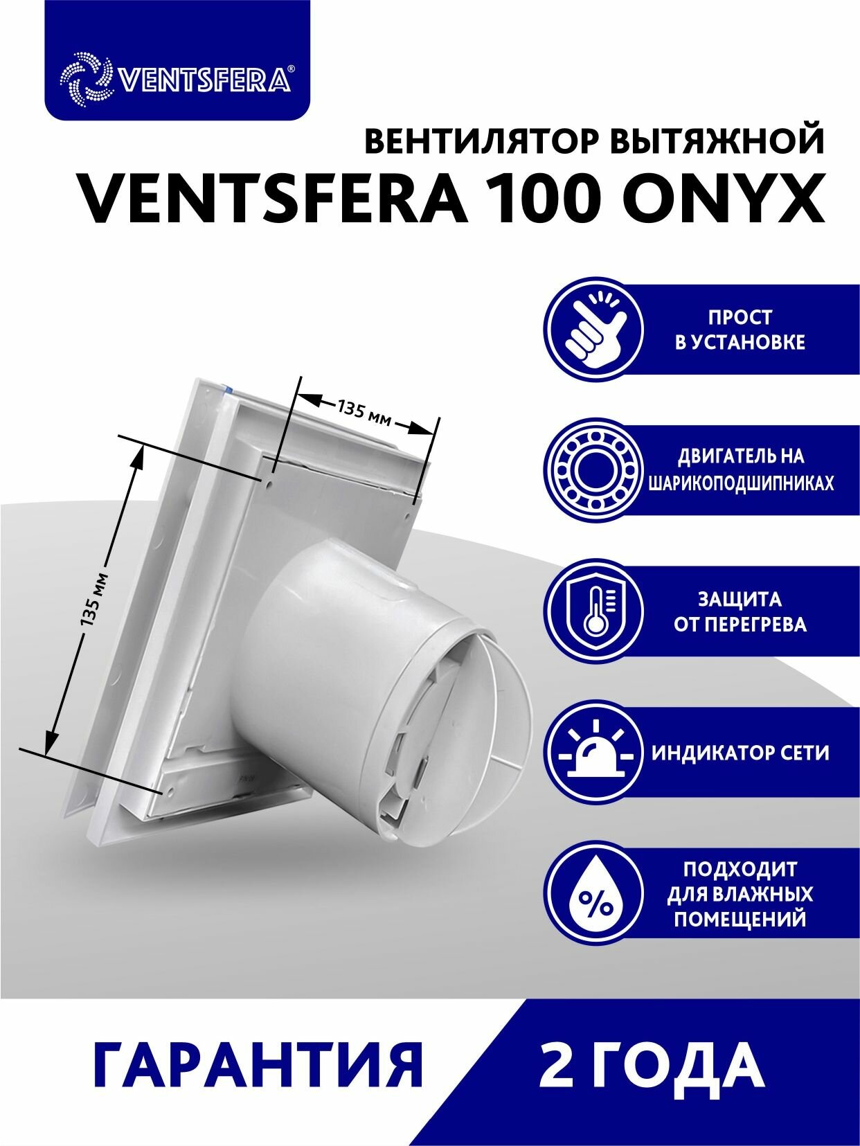 Купить Вентилятор вытяжной 100, бесшумный, с обратным клапаном, белый, D100 mm, VENTSFERA 100 ONYX 100 мм / вытяжка для ванной с доставкой по всей России. Вентилятор вытяжной 100, бесшумный, с обратным клапаном, белый, D100 mm, VENTSFERA 100 ONYX 100 мм / вытяжка для ванной: сравнение цен, характеристики, фото, актуальное наличие и цены.