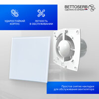 Вентилятор вытяжной бесшумный для ванной/туалета/кухни BETTOSERB с обратным клапаном, c накладкой белое стекло: сравнение цен, характеристики, фото, актуальное наличие и цены.