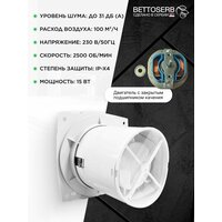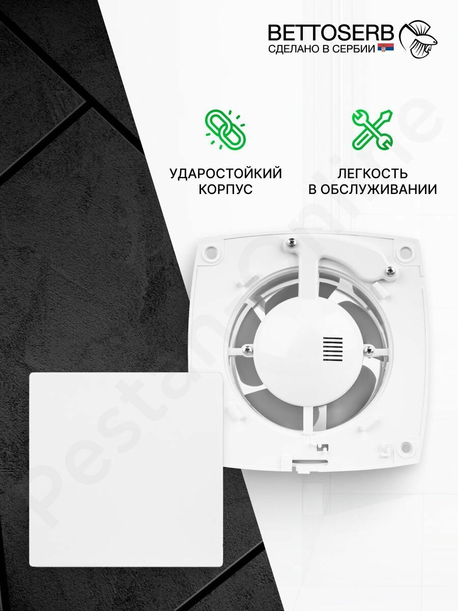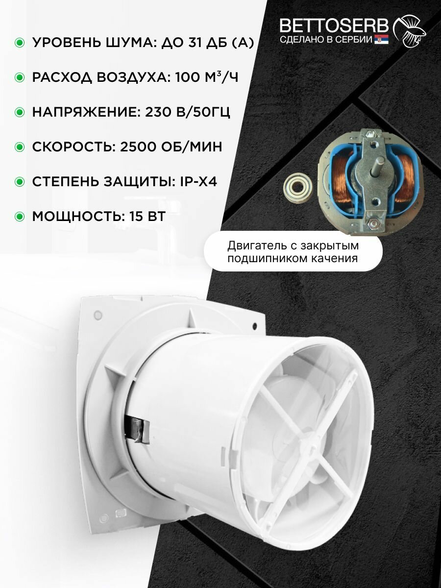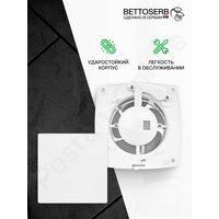 Вентилятор вытяжной бесшумный для ванной/туалета/кухни BETTOSERB с обратным клапаном, c накладкой белый пластик: сравнение цен, характеристики, фото, актуальное наличие и цены.