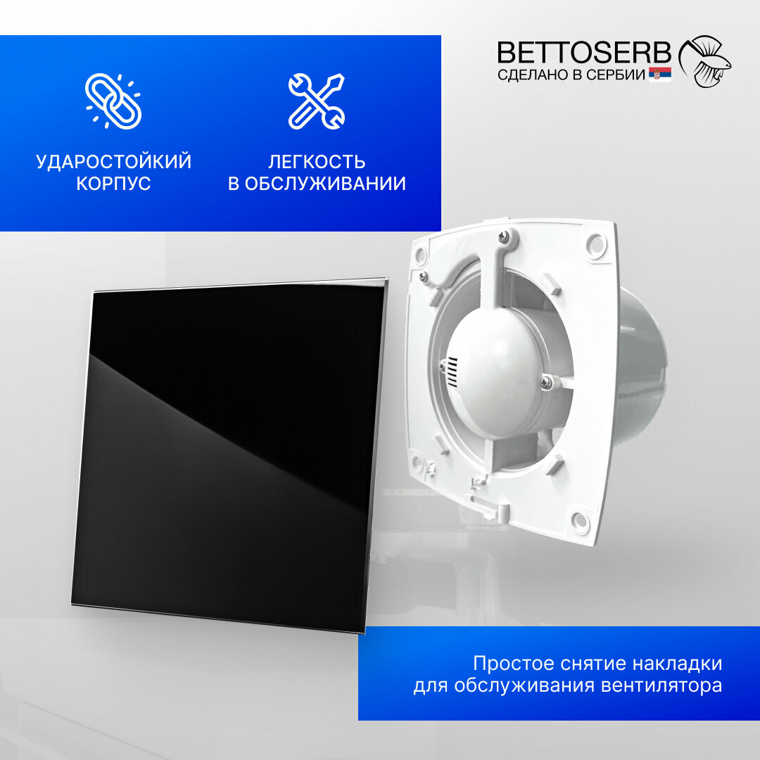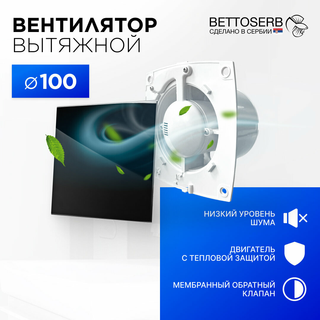 Вентилятор вытяжной бесшумный для ванной/туалета/кухни BETTOSERB с обратным клапаном, c накладкой черное стекло: сравнение цен, характеристики, фото, актуальное наличие и цены.