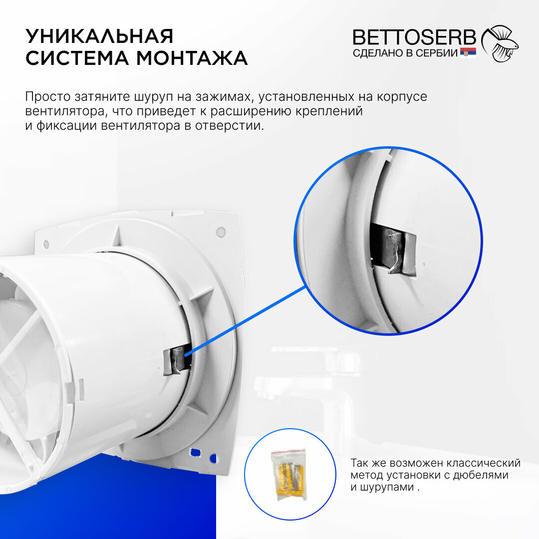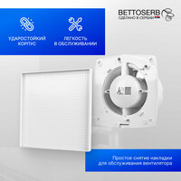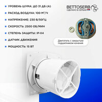 Вентилятор вытяжной бесшумный для ванной/туалета/кухни BETTOSERB с обратным клапаном, датчиком движения и таймером, c накладкой белая под плитку: сравнение цен, характеристики, фото, актуальное наличие и цены.