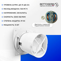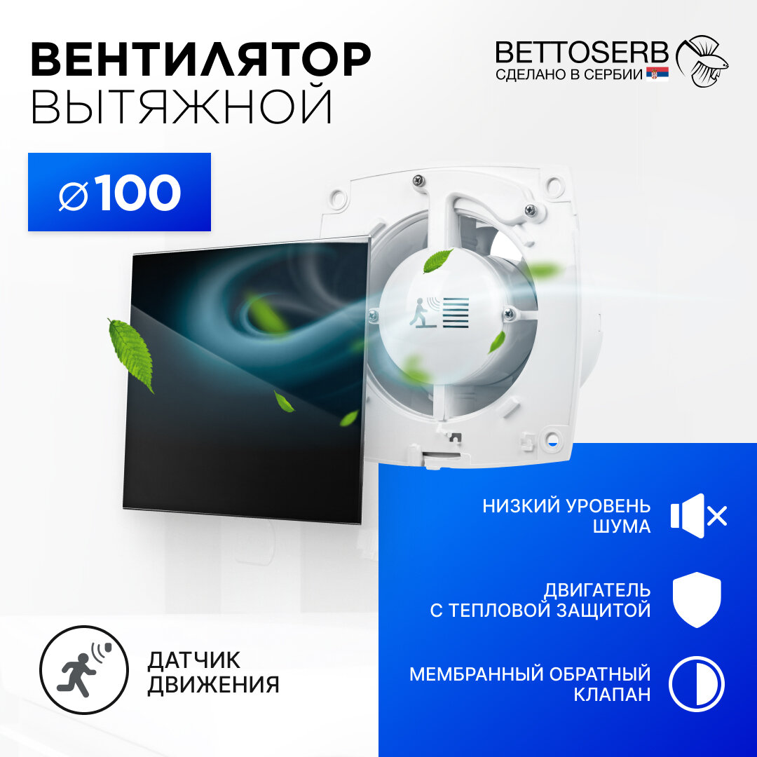 Вентилятор вытяжной бесшумный для ванной/туалета/кухни BETTOSERB с обратным клапаном, датчиком движения и таймером, c накладкой черное стекло: сравнение цен, характеристики, фото, актуальное наличие и цены.