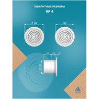 Вентилятор Auramax RF 4 может использоваться как для постоянной, так и для периодической вентиляции, что делает его универсальным решением. Он может быть установлен с использованием системы пластиковых или гибких каналов, а монтаж осуществляется с помощью саморезов.
