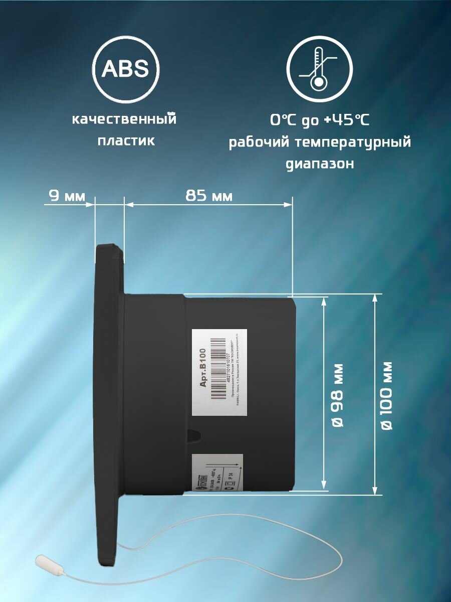Вентилятор вытяжной D 100 мм на шарикоподшипниках, с тяговым выключателем, с москитной сеткой, abs-пластик, черный глянцевый: сравнение цен, характеристики, фото, актуальное наличие и цены.