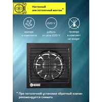 Купить Вентилятор вытяжной D 100 мм с обратным клапаном, с москитной сеткой, abs-пластик, черный глянцевый с доставкой по всей России.