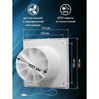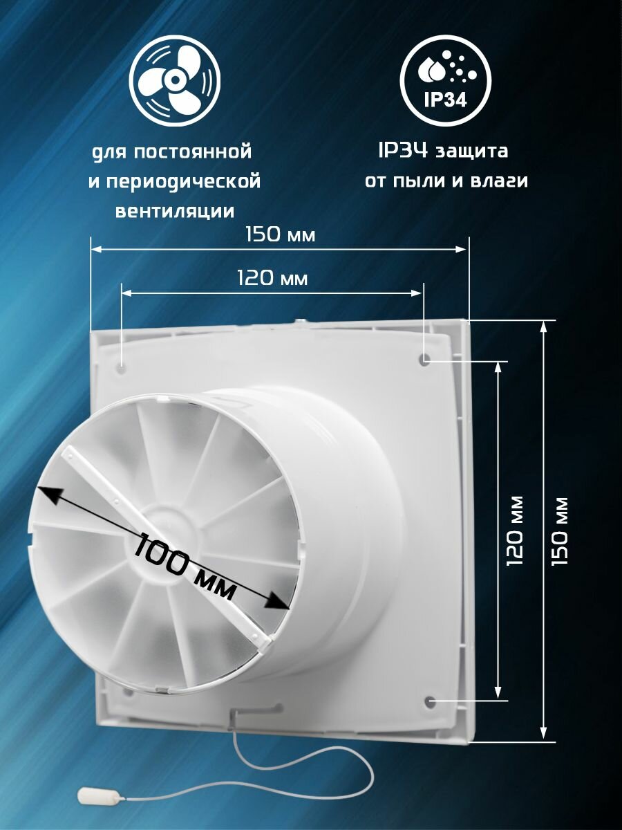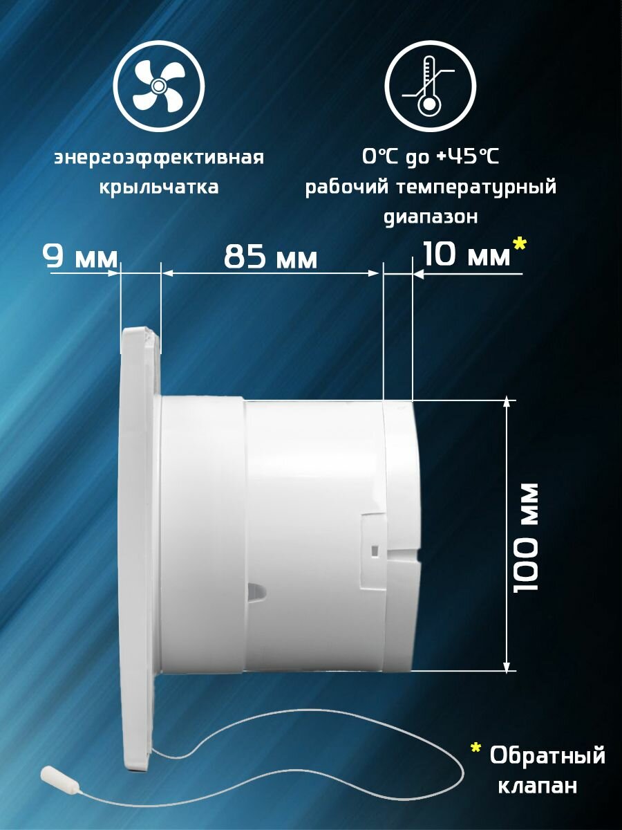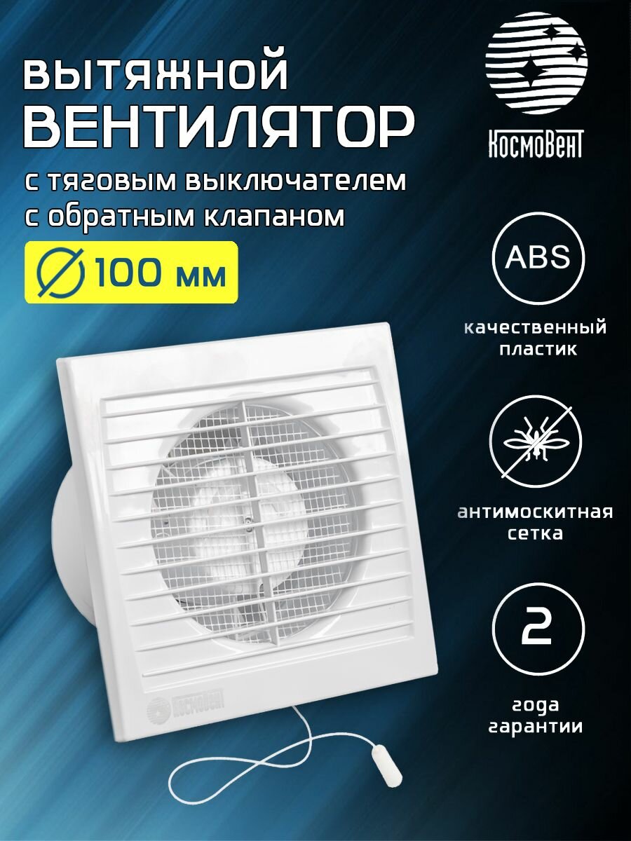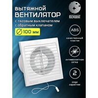 Вентилятор вытяжной D 100 мм с обратным клапаном, с тяговым выключателем, с москитной сеткой, abs-пластик, белый: сравнение цен, характеристики, фото, актуальное наличие и цены.