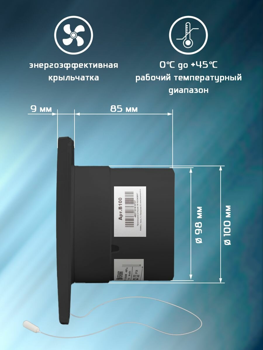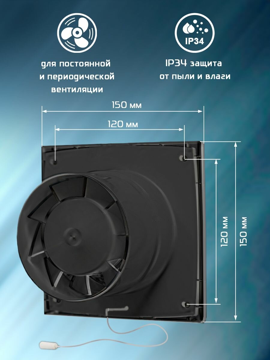 Вентилятор вытяжной D 100 мм с тяговым выключателем, с москитной сеткой, abs-пластик, черный глянцевый: сравнение цен, характеристики, фото, актуальное наличие и цены.