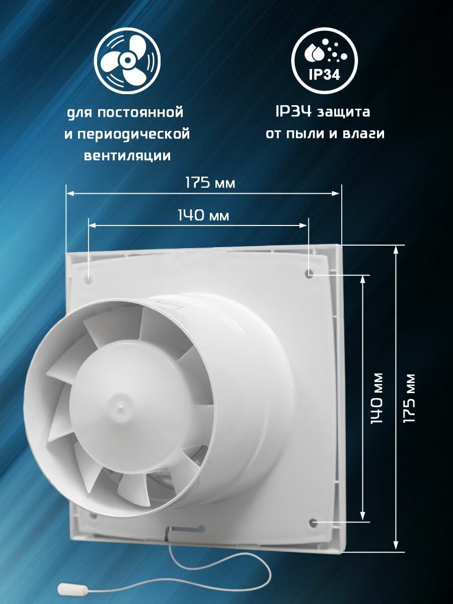 Вентилятор вытяжной D 125 мм на шарикоподшипниках, с тяговым выключателем, с москитной сеткой, abs-пластик, белый: сравнение цен, характеристики, фото, актуальное наличие и цены.