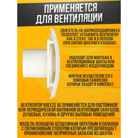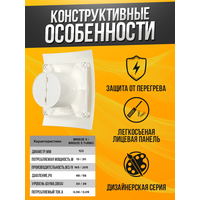 Вентилятор осевой вытяжной с обратным клапаном BREEZE 5C применяется для постоянной или периодической вытяжной вентиляции бытовых помещений: для ванной комнаты, для туалета, для кухни и других помещений, где требуется принудительная вытяжная вентиляция. Вентилятор вытяжной BREEZE 5C имеет установочный диаметр 125 мм. Вытяжной вентилятор дизайнерской серии BREEZE отличается лаконичным дизайном и нестандартной формой с закрытой лицевой панелью, которая легко снимается для очистки корпуса и крыльчатки вентилятора от пыли. Вентилятор вытяжной оснащен малошумным обратным клапаном, не позволяющим неприятным запахам из шахты проникать в помещение. Вытяжной вентилятор имеет двигатель на шарикоподшипниках, не требующий дополнительного обслуживания и дающий возможность установить вентилятор как в вертикальном, так и в горизонтальном положении (при снятии обратного клапана). Шарикоподшипники гарантируют до 40 тысяч часов непрерывной работы двигателя. Вентилятор вытяжной имеет предохранитель от перегревания, срабатывающий при температуре двигателя +115-125 °C и останавливающий работу вентилятора в целях электро- и пожаробезопасности. Модель BREEZE 5C имеет уровень шума 30 дБ(А), что сравнимо с шепотом человека. Вытяжной вентилятор соответствует международным стандартам защиты оболочки электрооборудования от проникновения твердых предметов и воды. Степень защиты - IP24. Здесь цифра «2» - защита от негативного действия сторонних предметов диаметром более 12,5 мм, например, от касаний корпуса пальцами; цифра «4» - защита от капель жидкости любой направленности. Вытяжной вентилятор изготовлен из ABS-пластика. ABS-пластик долговечен, пластичен и ударопрочен, дольше сохраняет свой первозданный вид под воздействием УФ-лучей и имеет идеально ровную глянцевую поверхность. Благодаря ему элементы вентиляции не боятся ударов и падений, а также перепадов температур от -40 до +90 °C. Поэтому вентилятор вытяжной с обратным клапаном BREEZE 5C подойдет как для дома, так и для дачи. Вытяжные вентиляторы BREEZE - это высокое качество, легкосъемные стильные панели, низкий уровень шума, экономичное энергопотребление, защита от перегрева, защита от твердых предметов и воды, ABS-пластик. Качественная принудительная вытяжная вентиляция с продукцией компании ERA Group - это высокий уровень комфорта и здоровье Вашего дома. Монтажный шаблон поможет отметить место для крепления вентилятора. Монтаж осуществляется с помощью саморезов, которые входят в комплект.
