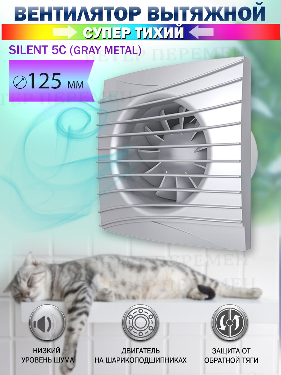 Купить Вентилятор вытяжной Diciti SILENT 5C Gray metal, с обратным клапаном, бесшумный, D 125 мм с доставкой по всей России. Вентилятор вытяжной Diciti SILENT 5C Gray metal, с обратным клапаном, бесшумный, D 125 мм: сравнение цен, характеристики, фото, актуальное наличие и цены.