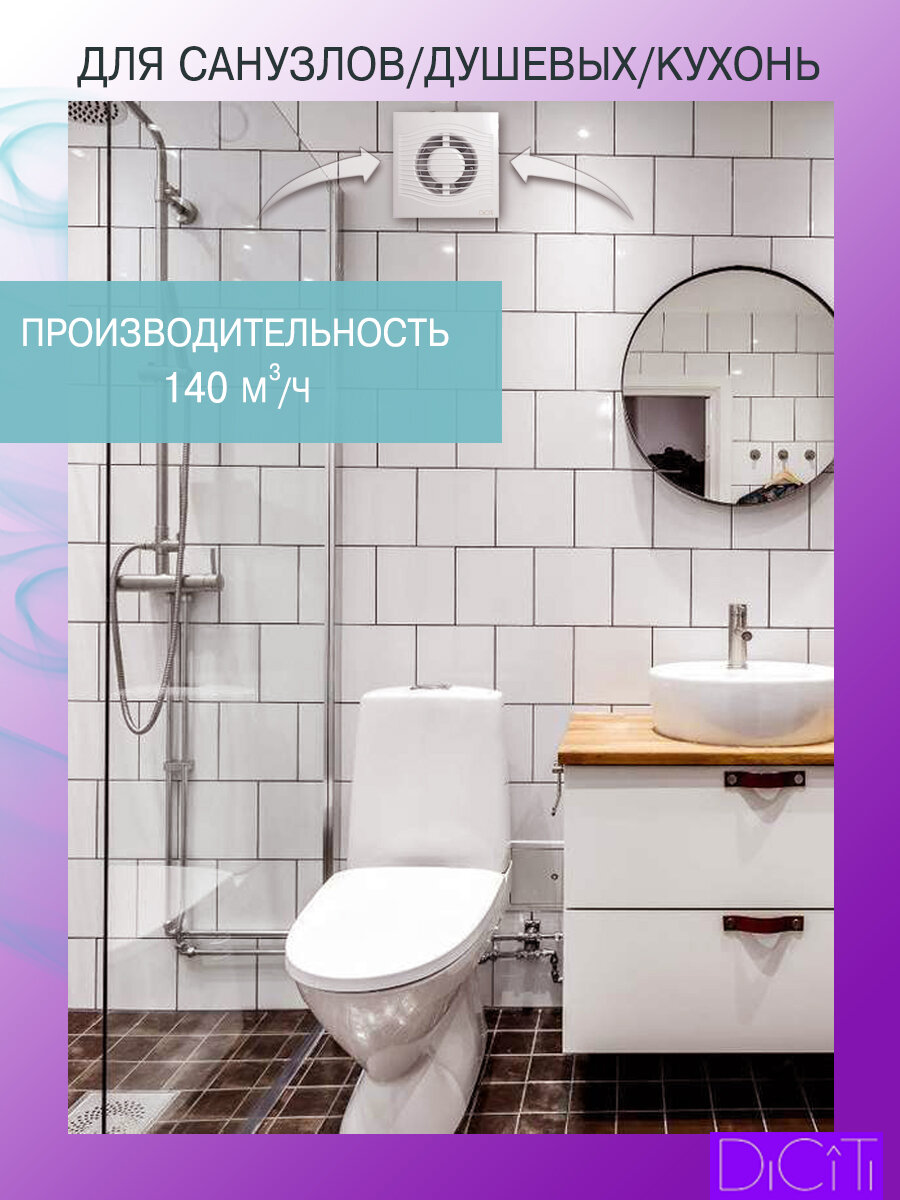 Вентиляторы DICITI предназначены для постоянной или периодической вентиляции бытовых помещений, подходят для монтажа в вентиляционные системы как c воздуховодами так и самостоятельно на ровную поверхность достаточной жесткости.