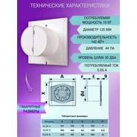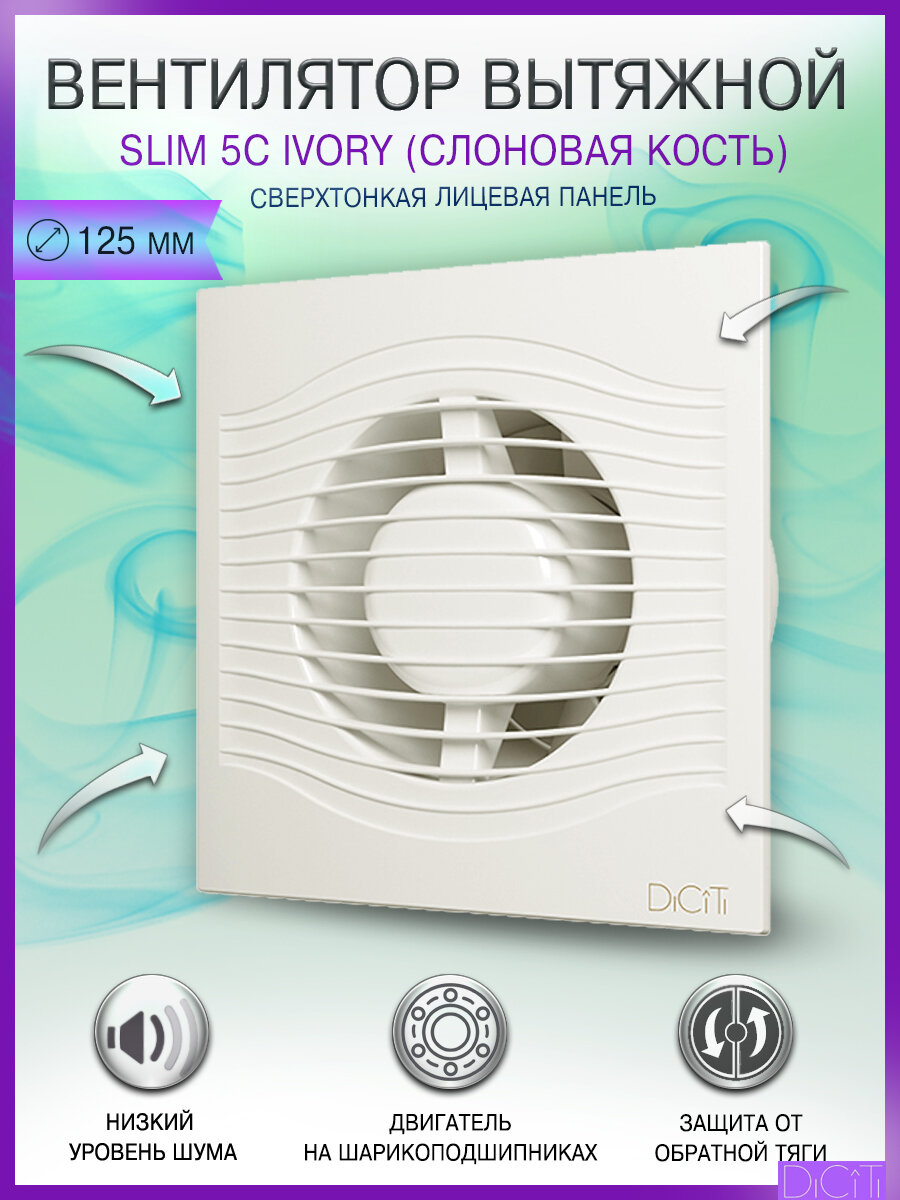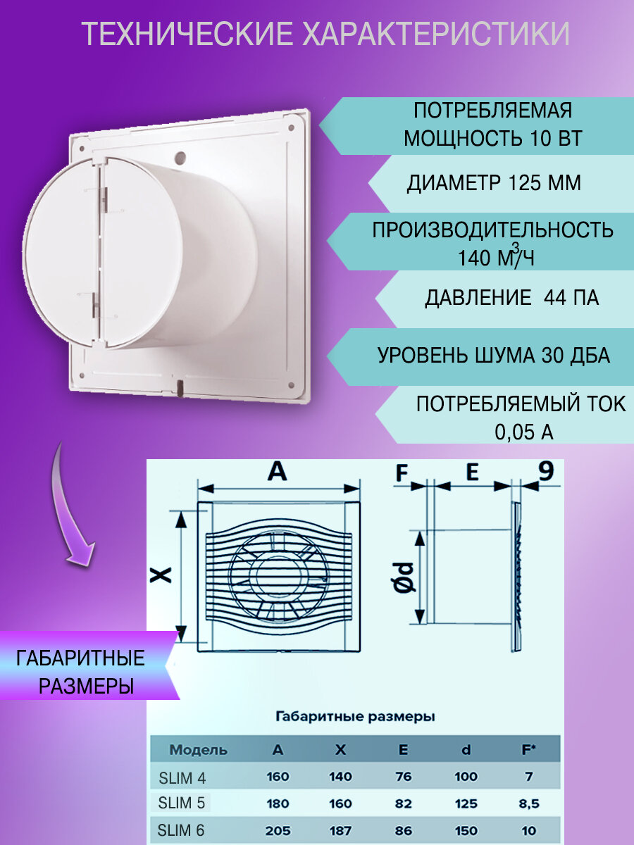 Вытяжной вентилятор SLIM 5C DICITI с обратным клапаном имеет установочный диаметр 125 мм.