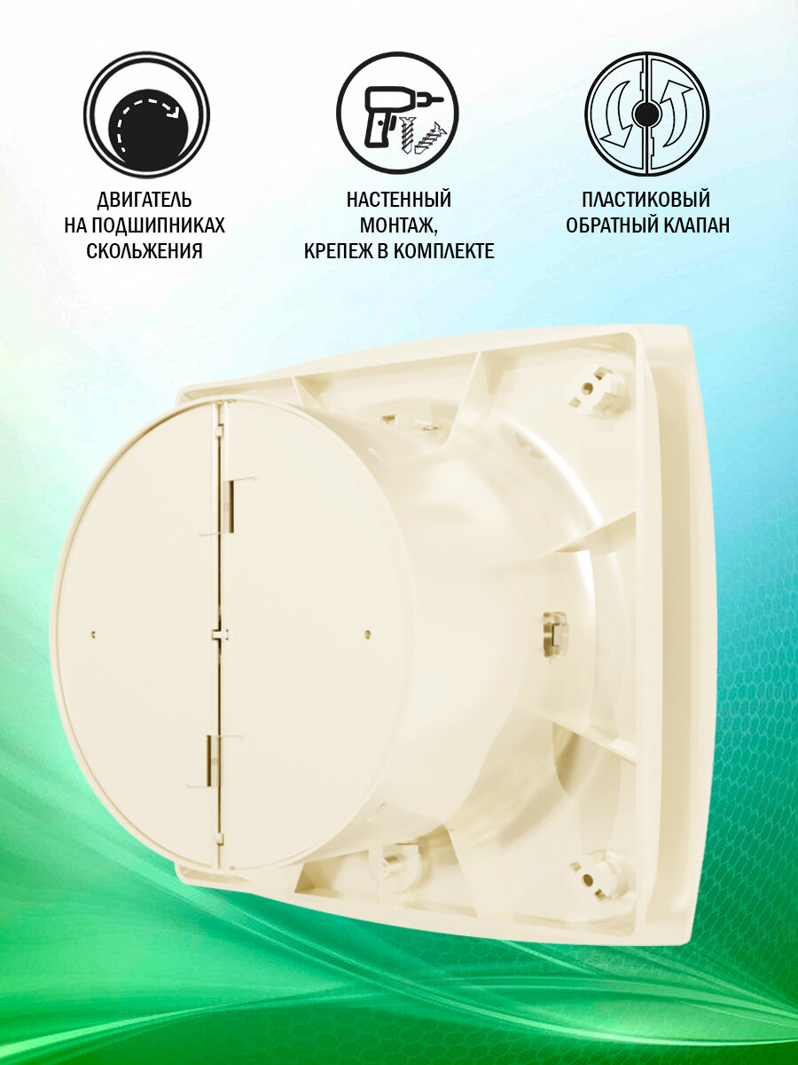 Вентилятор вытяжной Era WAVE 120C, с обратным клапаном, слоновая кость, D 120 мм: сравнение цен, характеристики, фото, актуальное наличие и цены.