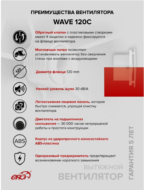 Вентилятор накладной WAVE D120 с обратным клапаном ERA, белый: сравнение цен, характеристики, фото, актуальное наличие и цены.