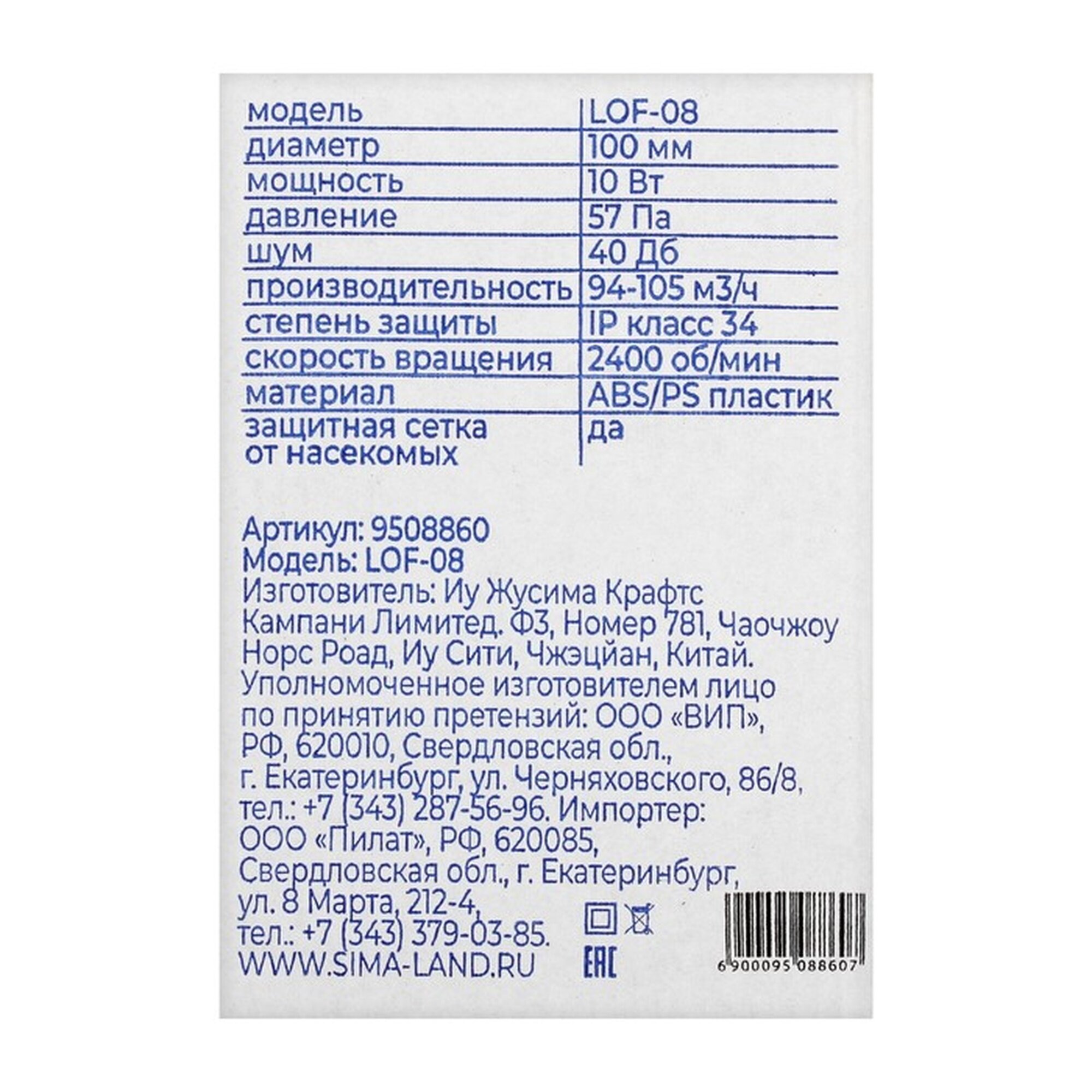 Вентилятор вытяжной ZEIN LOF-08, d=100 мм, 220 В, без выключателя: сравнение цен, характеристики, фото, актуальное наличие и цены.