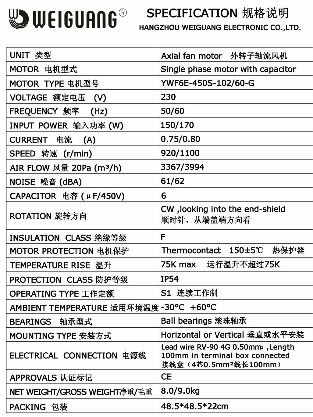 Купить Вентилятор Weiguang YWF-6E-450-S-102/60-G, осевой с доставкой по всей России. Вентилятор Weiguang YWF-6E-450-S-102/60-G, осевой: сравнение цен, характеристики, фото, актуальное наличие и цены.