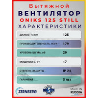 Вентилятор Zernberg Oniks 125 STILL, настенный и потолочный вентилятор производительностью 185 м³/ч для вытяжки: сравнение цен, характеристики, фото, актуальное наличие и цены.