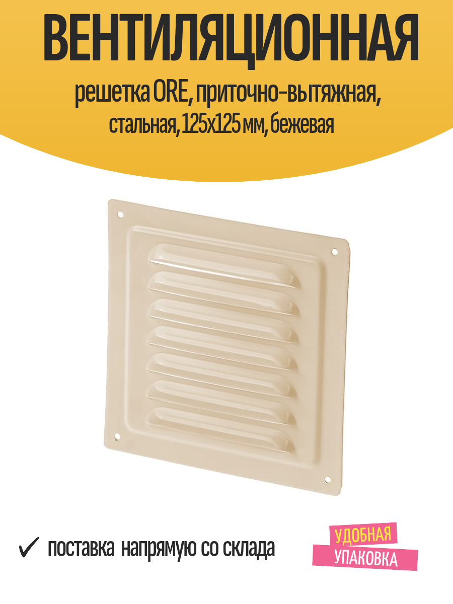 Купить Вентиляционная решетка ORE, приточно-вытяжная, стальная, 125×125 мм, бежевая с доставкой по всей России. Вентиляционная решетка ORE, приточно-вытяжная, стальная, 125×125 мм, бежевая: сравнение цен, характеристики, фото, актуальное наличие и цены.