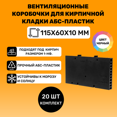 Вентиляционные коробочки для кирпичной кладки 115х60х10 (Черные АБС пластик) 20 штук: сравнение цен, характеристики, фото, актуальное наличие и цены.