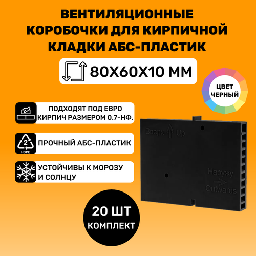Вентиляционные коробочки для кирпичной кладки 80х60х10 (Черные АБС пластик) 20 штук: сравнение цен, характеристики, фото, актуальное наличие и цены.