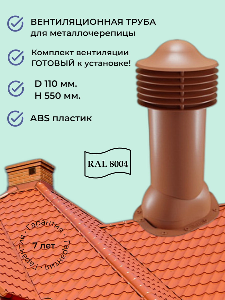 Вентиляционный выход 110 мм. для кровли из металлочерепицы типа монтеррей, утепленный, Viotto, RAL 8004 терракотовый: сравнение цен, характеристики, фото, актуальное наличие и цены.