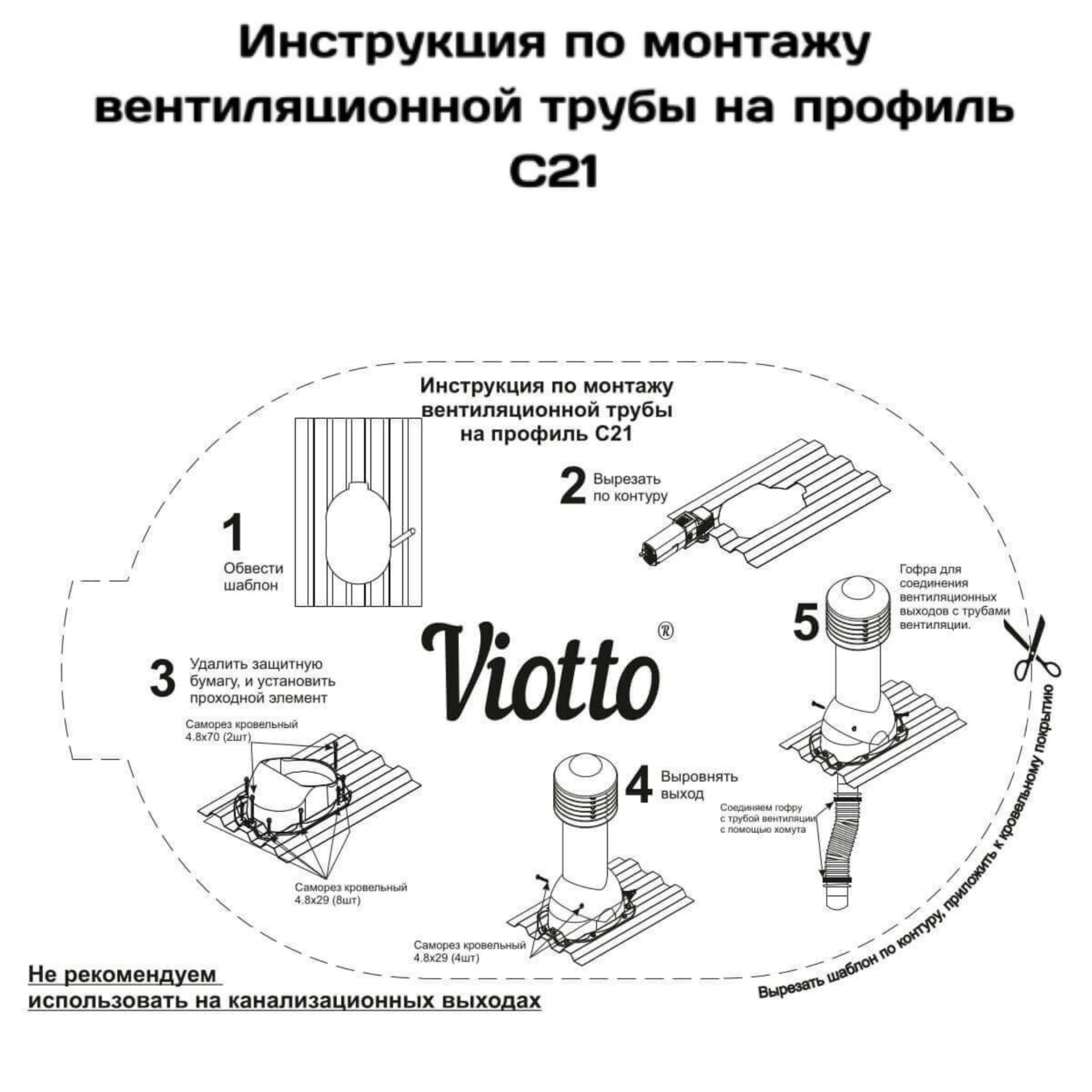 Труба вентиляции VIOTTO 150/125 мм. утепленная для профнастила С21 обеспечивает приток свежего воздуха и правильную циркуляцию воздушных потоков в доме.