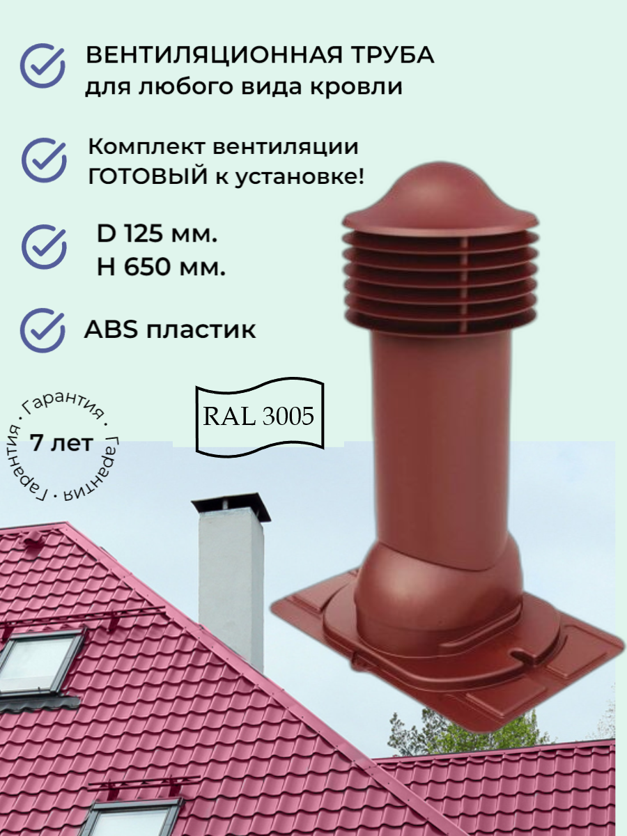 Вентиляционный выход универсальный 150/125 мм, для кровли крыши из профнастила и металлочерепицы, утепленный, Viotto RAL 3005 вишневый: сравнение цен, характеристики, фото, актуальное наличие и цены.