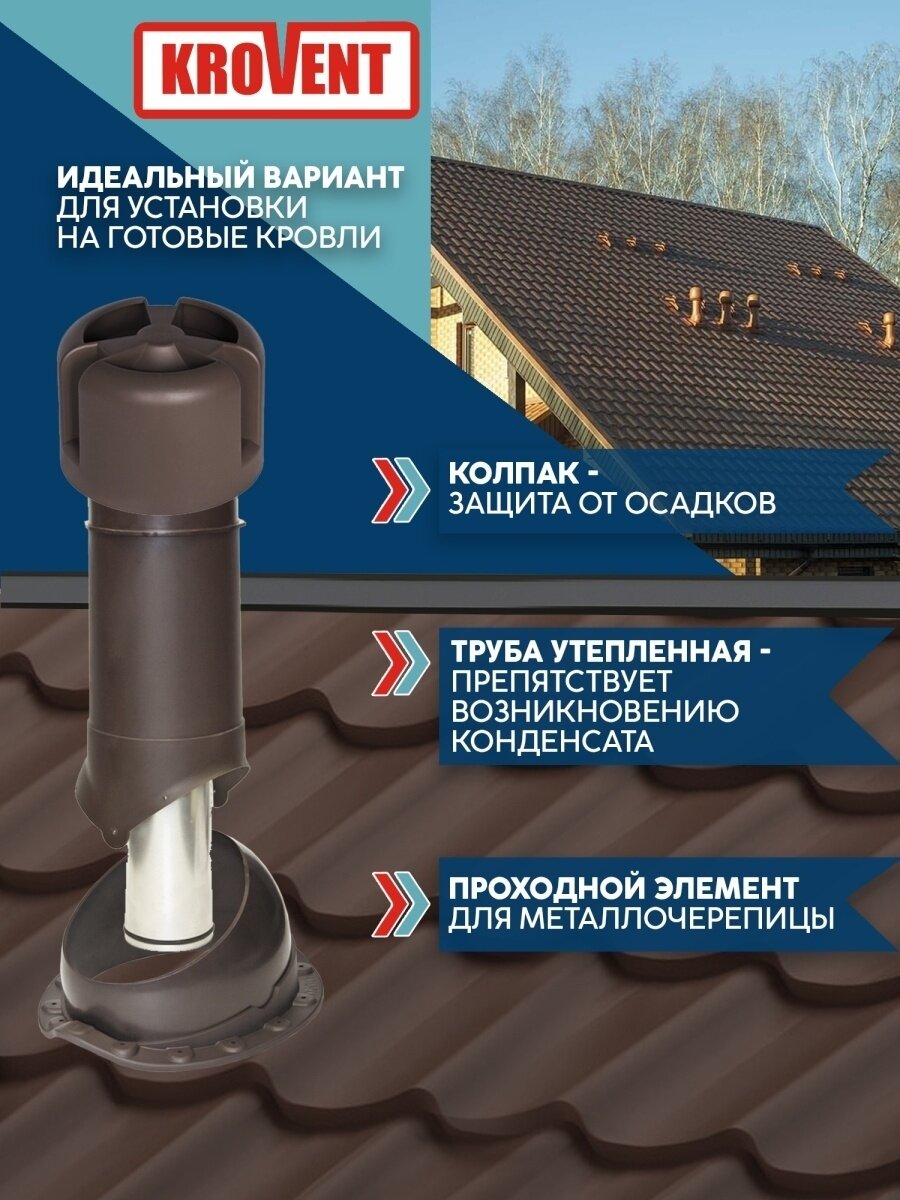 Вентиляционный выход KROVENT 125/500 для металлочерепицы, коричневый, полипропилен/оцинкованная сталь: сравнение цен, характеристики, фото, актуальное наличие и цены.