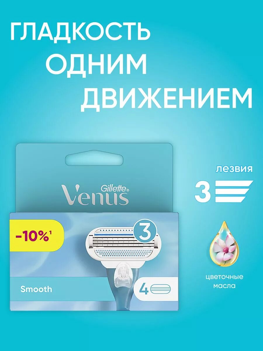 Купить Venus Smooth Сменные кассеты, 4 шт. с доставкой по всей России. Venus Smooth Сменные кассеты, 4 шт.: сравнение цен, характеристики, фото, актуальное наличие и цены.