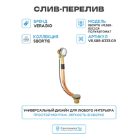 Слив-перелив Veragio Sbortis VR. SBR-8333. CR полуавтомат Хром латунь хром: сравнение цен, характеристики, фото, актуальное наличие и цены.