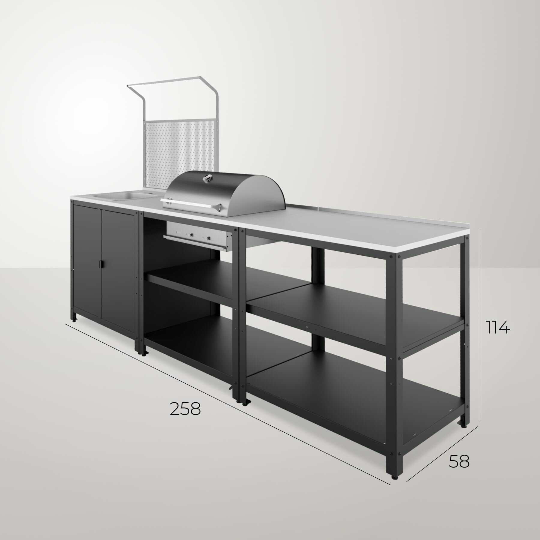 VERANDA: Угольный Гриль + Мойка с Обшивкой - Уличная Модульная Кухня