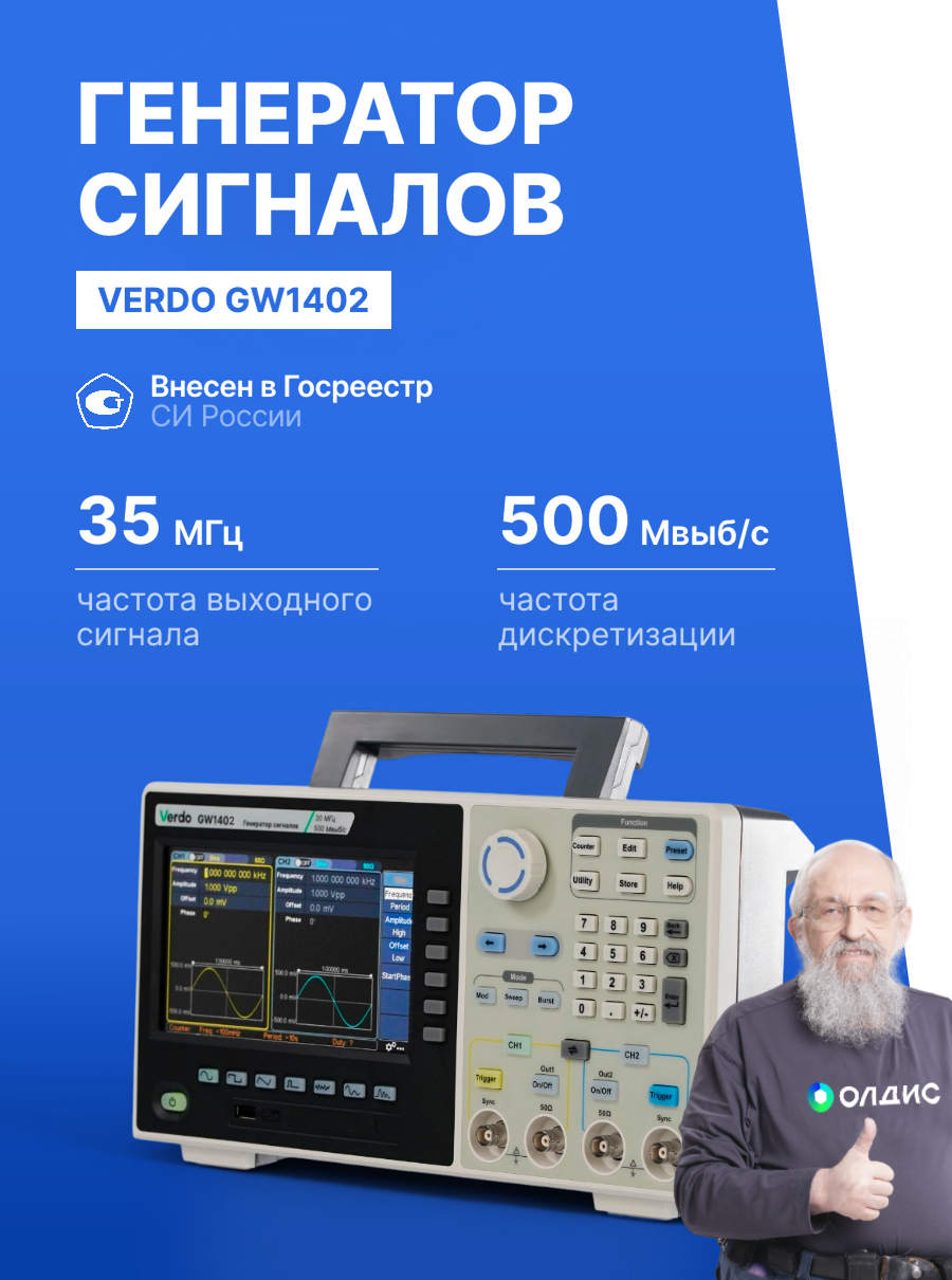 Купить VERDO GW1402 Генератор сигналов с поверкой 35 МГц, 500 Мвыб/с с доставкой по всей России. VERDO GW1402 Генератор сигналов с поверкой 35 МГц, 500 Мвыб/с: сравнение цен, характеристики, фото, актуальное наличие и цены.